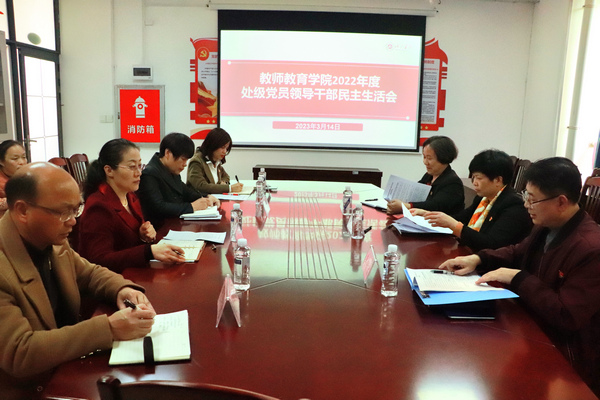 本次民主生活会主要有六个流程:学院党委书记通报2021年度院级党员领导干部党史学习教育专题民主生活会、意识形态专题民主生活会整改落实情况;党委书记通报本次民主生活会征求意见建议情况;党委书记代表领导班子作对照检查并对典型事例进行剖析;教院领导班子成员分别作对照检查,开展批评和自我批评;学校分管领导对会议进行点评;党委书记总结会议情况,提出整改工作要求。
