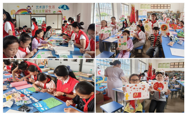 “巧手绘爱我中华”黏土体验工坊成为活动的亮点。孩子们在大学生党员的指导下,用粘土创作出一幅幅富有教育意义的作品,在实践中感受艺术与教育的融合魅力。作品展示环节中,孩子们踊跃分享自己对“读书报国”的理解,童真的话语传递出真挚的爱国之情。