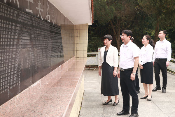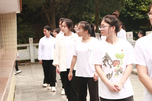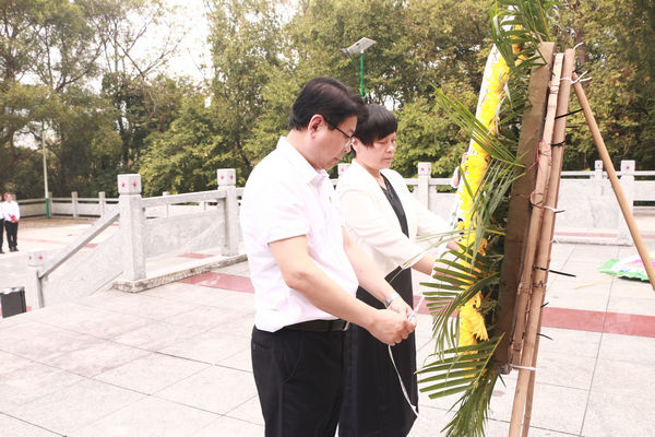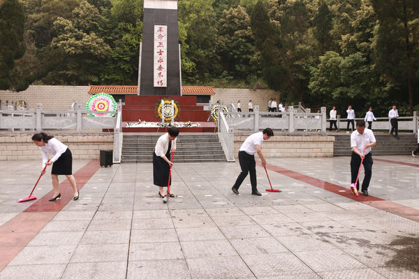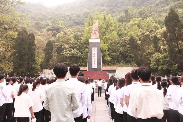 在活动中,在场师生向烈士默哀1分钟,为烈士敬献花篮并三鞠躬;学院党委书记李新富、院长邓琴整理缎带,扶正挽联,带领师生瞻仰烈士纪念碑,并祭扫烈士陵园。