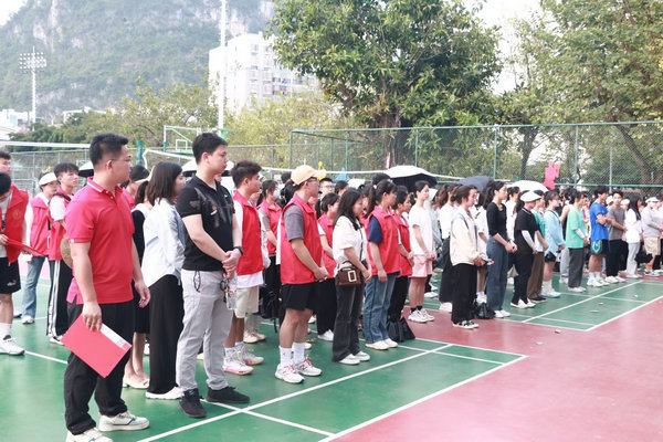 在启动仪式上,党委副书记郭英莉致开幕词,她希望同学们以本次比赛为契机,积极投身体育实践活动,激活体育新活力,弘扬中华体育精神。随后,由裁判代表覃惠成代表裁判员进行宣誓;由运动员代表韦相恒进行宣誓。