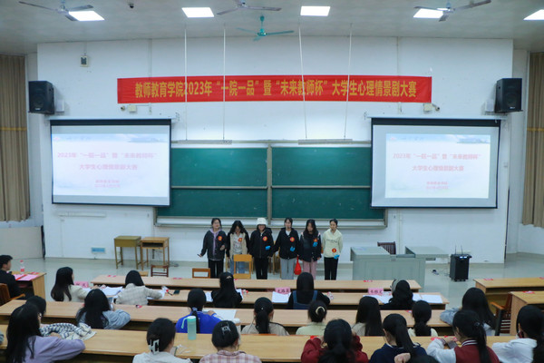 为营造积极健康的校园心理文化,向同学们宣传心理健康知识,传播心理健康理念。4月25日,万象城awc官网登录入口在弘毅楼1-101教室举行“一院一品”暨“未来教师杯”心理情景剧大赛。万象城awc官网登录入口教师韦素琦、龙路英、覃良慧、钟凤、韦雅文担任本次大赛评委。