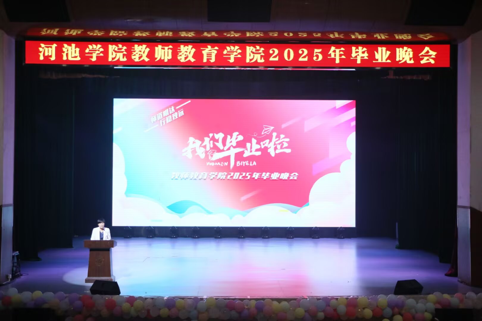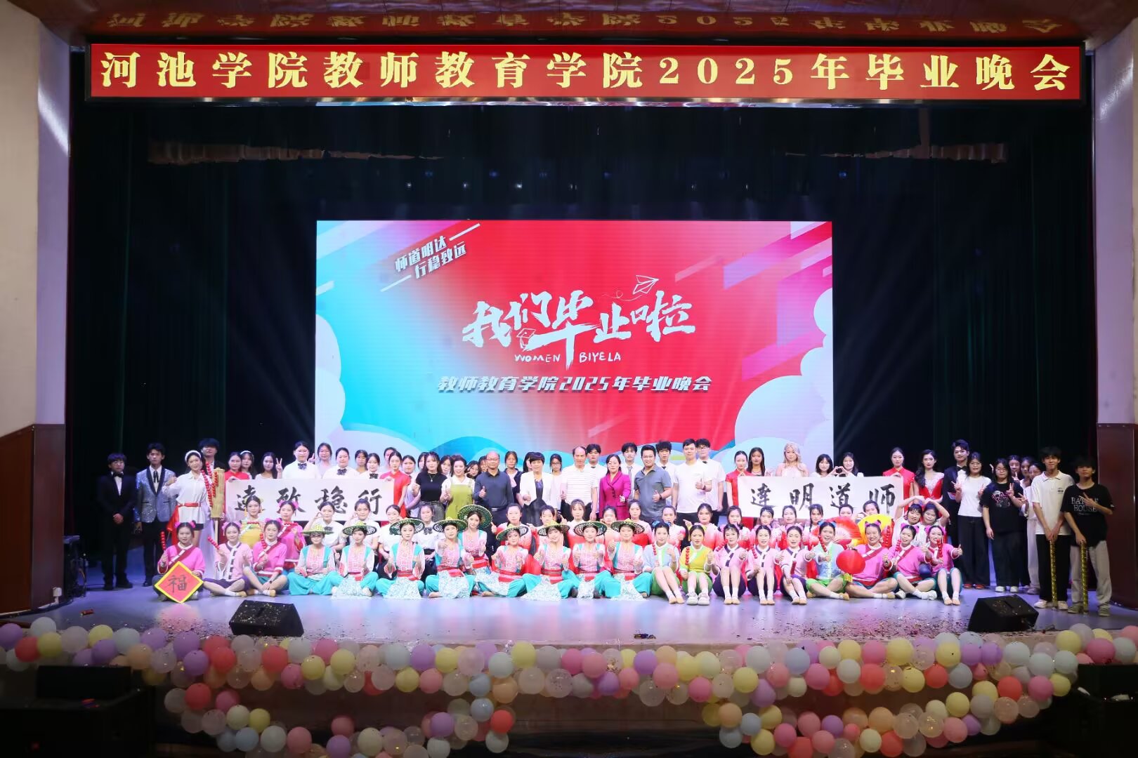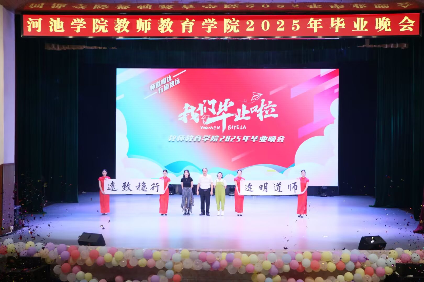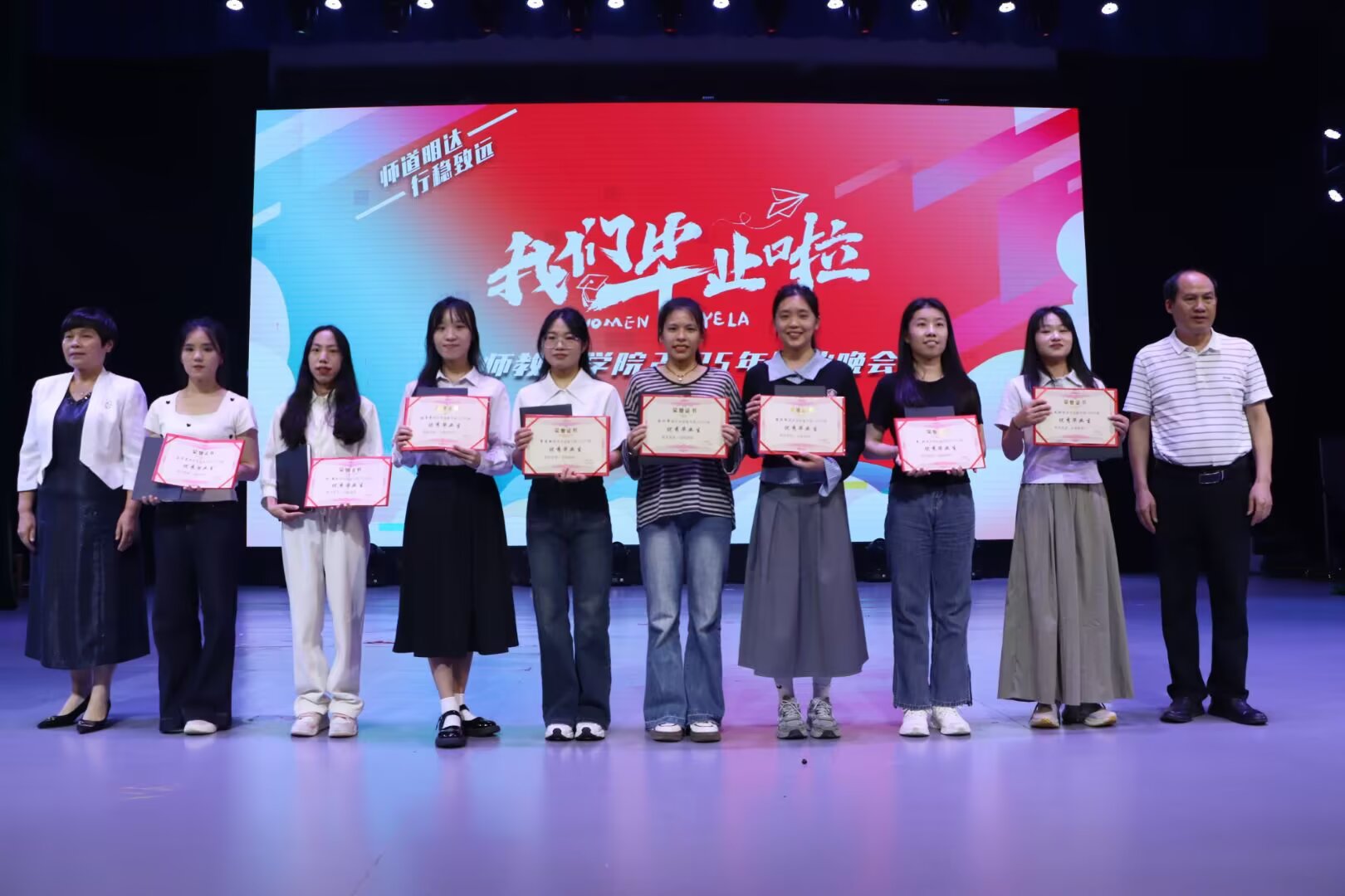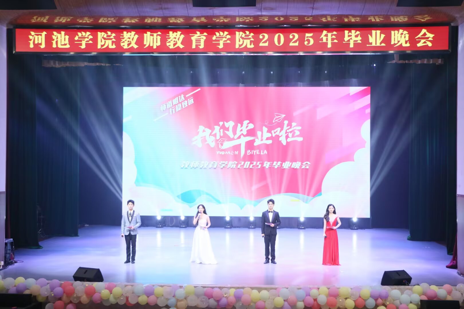 这场毕业晚会不仅是对大学时光的深情回望,更是对未来征程的热力饯行。它以艺术的形式封存了毕业生们的青春记忆,更将“学高为师,身正为范” 的精神烙印深植于学子心间。愿 2025 届全体毕业生带着母校的谆谆嘱托,在教育事业的沃土上深耕不辍,在广阔的人生舞台上续写属于师院人的璀璨荣光!(通讯员:邵昕玥;摄影:梁丹莉 邵昕玥 陆彩群 黄雪莹;校对:覃良慧;审核:郭英莉;)