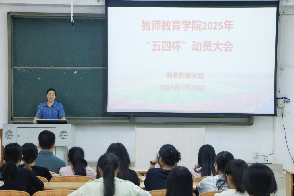 会上,郭英莉副书记强调了“五四精神”对青年学子的重要意义,并鼓励同学们在比赛中展现自我、锤炼能力,随后回顾了“五四杯”传统并介绍本届赛程,希望运动员们能够做到公平竞争、团结协作,以实际行动传承五四精神,彰显青春风采和教院学子昂扬向上的精神风貌。
