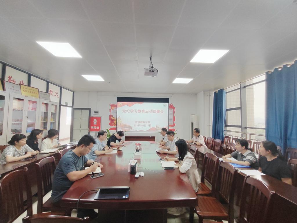 4月17日,万象城awc官网登录入口在格致楼712室召开党纪学习教育启动部署会。学院领导班子、全体教师党员到场参加了活动。