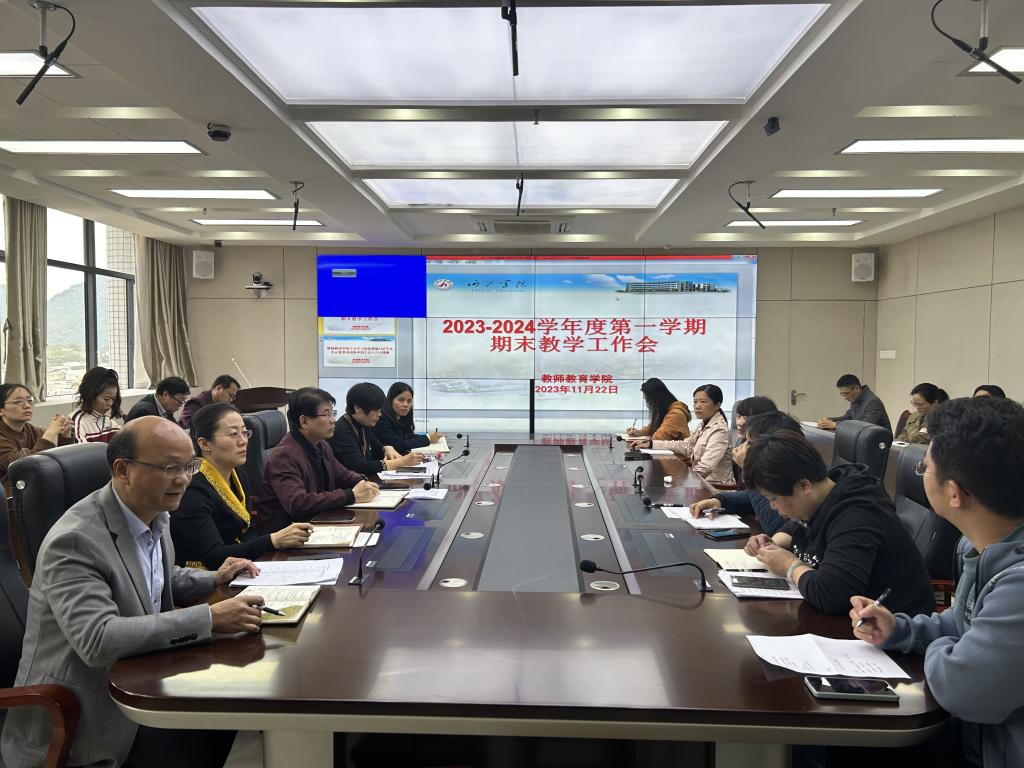 11月22日,万象城awc官网登录入口在格致楼907室召开2023-2024学年度第一学期期末教学工作会。学院全体教职工到场参加了会议。