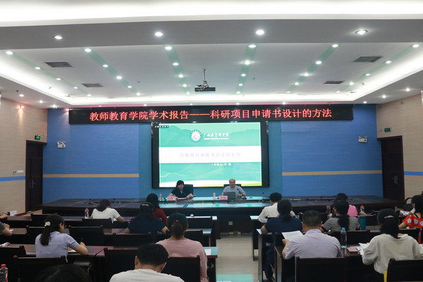 为推动万象城awc官网登录入口的科研工作和广西教育科学重点研究基地建设单位的建设,5月21日,万象城awc官网登录入口在图书馆122会议室举办学术讲座。本次讲座邀请了广西教育研究院旷乾院长,开展以“科研项目申报书设计的方法”为主题的学术讲座,讲座由邓琴院长主持,教院全体教师聆听讲座。