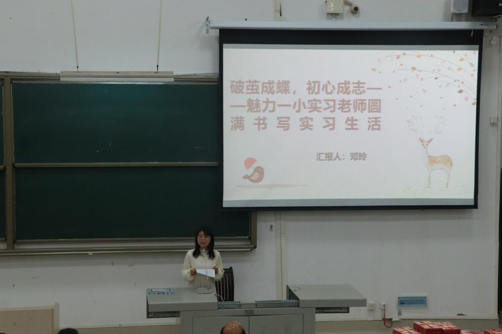邓琴院长在讲话中就同学们在实习过程中展现良好的精神风貌表示肯定,她表示同学们在实习期间不仅严守纪律、服从指挥,虚心学习,专业知识、操作技能、综合素质、社会经验等方面都有了较大的提升,也充分体现了教院人才培养模式的良好成效。这些成绩的取得离不开学院的高度重视、组织领导、周密计划,更离不开全体教师老师的积极参与,带队老师的悉心指导,实习同学认真的实习态度。邓琴希望同学们能够高度重视和及时反思实习期间存在的问题,在今后的教学活动中能够胸有成竹、得心应手,也希望同学们能认真总结实习经验,找出不足,在最后的学习阶段进一步充实自己,夯实基础,追求卓越。