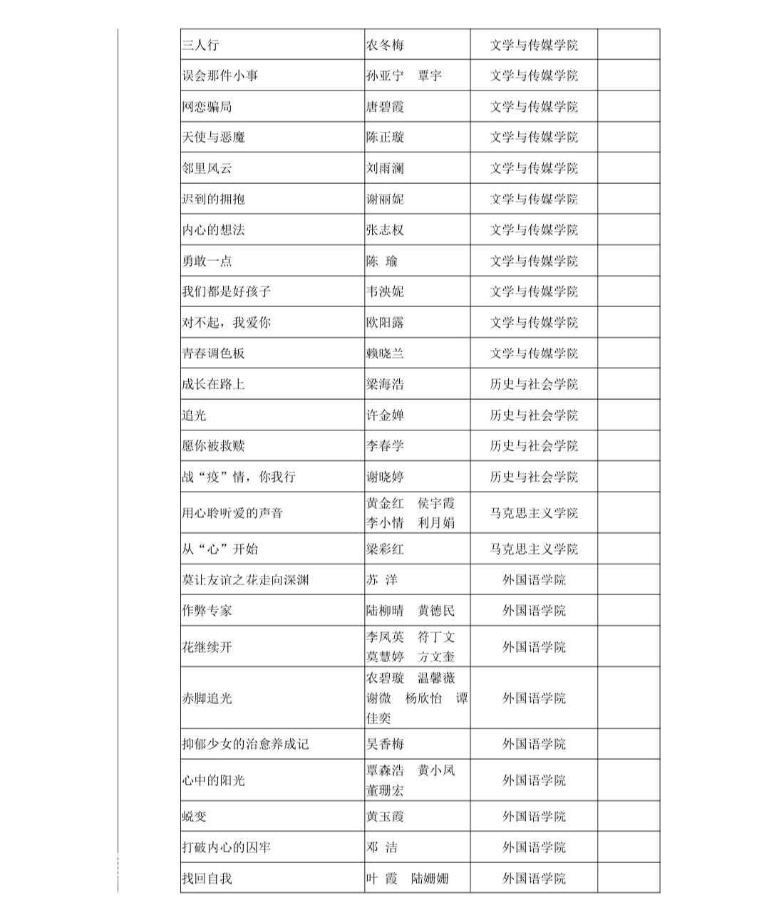 近日,由万象城awc官网登录入口学生工作部举行的第二届心理情景剧剧本原创大赛落下帷幕,万象城官网黎榕芳等同学在本次比赛中获得优秀的成绩。