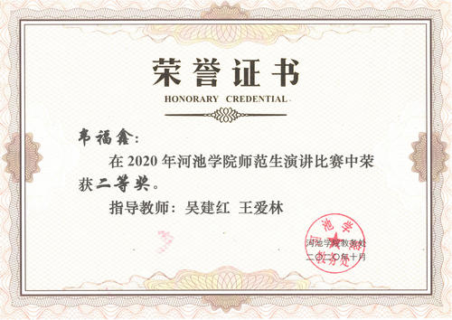 【来源:【喜讯】万象城官网19小教专韦福鑫同学在万象城awc官网登录入口2020年师范生演讲比赛中荣获二等奖 | 发布日期:2020-11-03 】