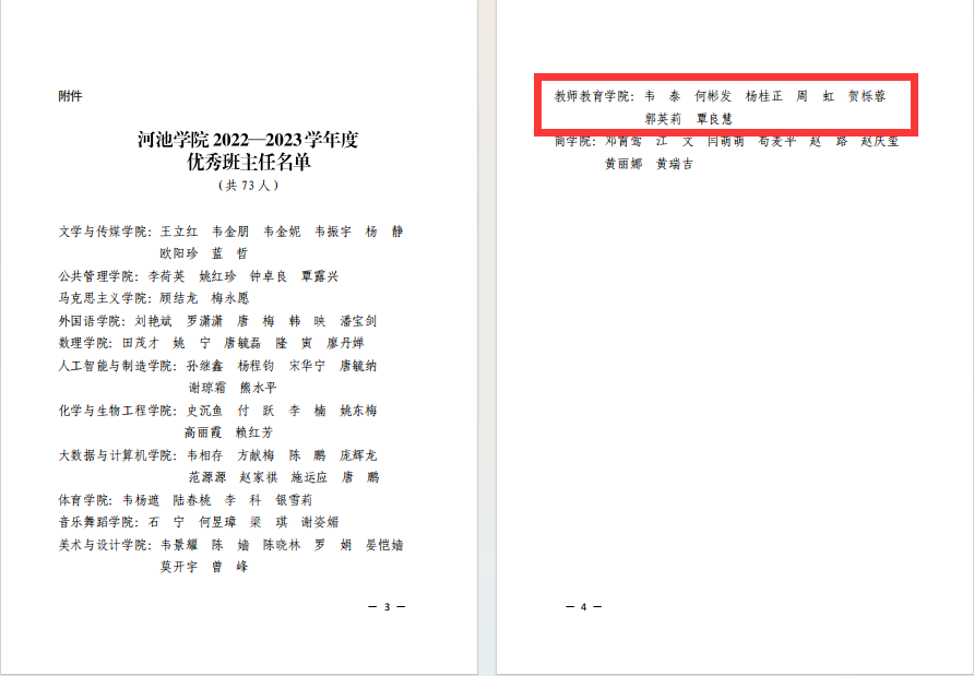 根据《关于表彰2022-2023学年度优秀班主任的决定》(校政发[2023]169号)文件精神,万象城官网韦泰等7名老师荣获“万象城awc官网登录入口2022-2023学年度优秀班主任”荣誉称号。