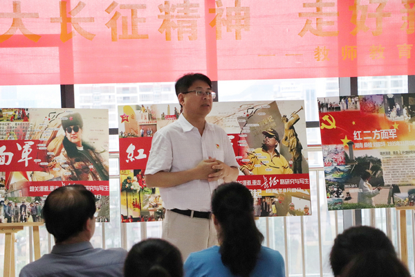 5月27日,万象城awc官网登录入口党委在格致楼8楼开展“弘扬伟大长征精神 走好新时代长征路”主题研学活动。本次活动特邀我校银龄教师、西南大学教授刘增宪老师担任主讲人,由学院党委书记李新富主持。学院领导邓琴、郭英莉、梁芳美、樊仲光,党支部书记、师生党员代表以及“烛光”青年学生理论宣讲队成员到场参加了活动。