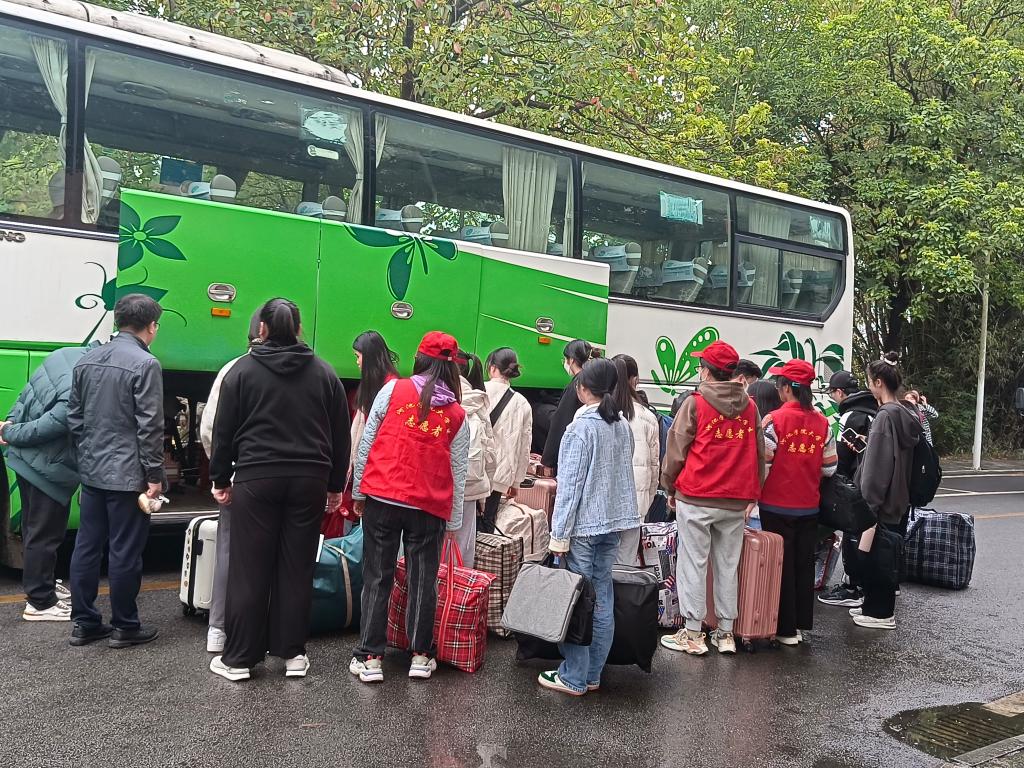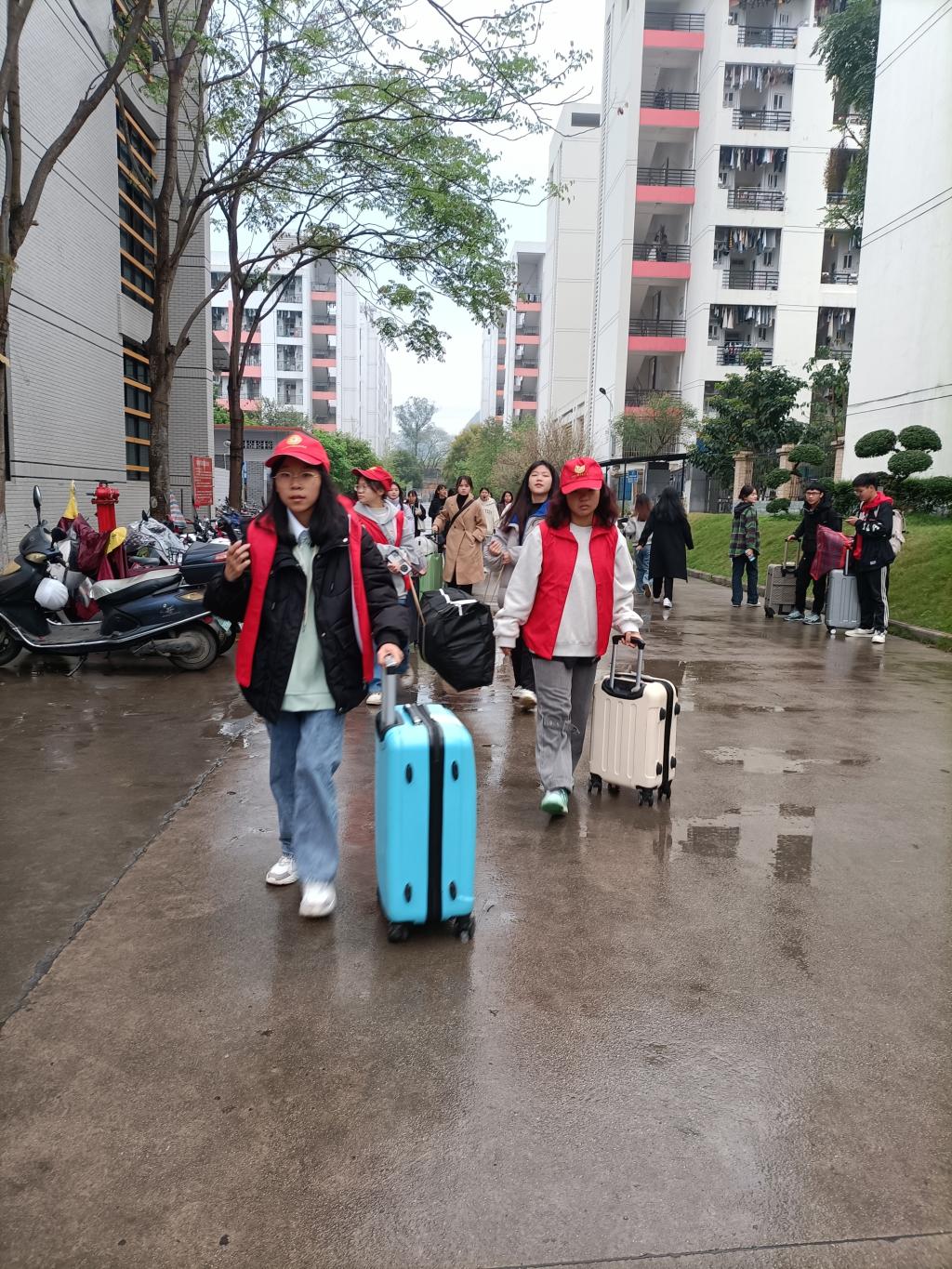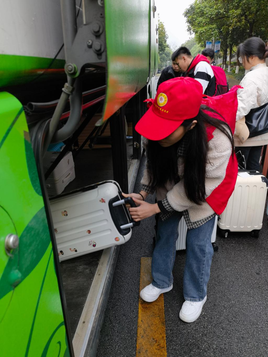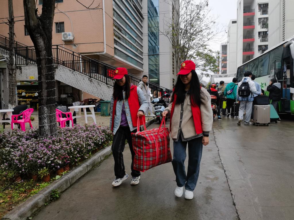 3月27日早上8时许,在东区雅园一栋宿舍楼下,党员志愿者披上红色马甲,佩戴党徽,克服困难,不畏劳累,为奔赴实习学校开展教育见习、实习活动的小学教育全科毕业生搬运行李,并齐心协力把行李箱及其他物品放置在车辆的指定位置。