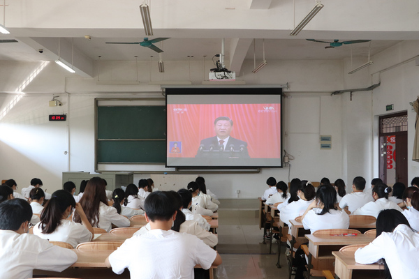 学院领导、教职工和学生党员、发展对象、入党积极分子以及部分班级学生分别以支部、班级等形式在弘毅楼教室集中收看,其余师生也以宿舍为单位等各种形式,通过网络、电视、广播等方式收听收看,做到师生全覆盖。