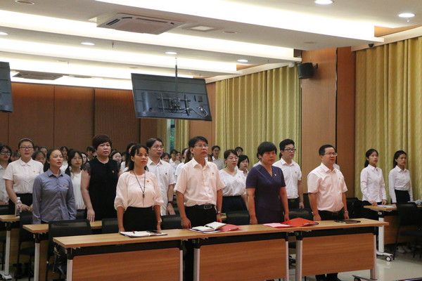 6月29日,万象城awc官网登录入口在格致楼101室举行新党员入党宣誓暨老党员重温入党誓词党日活动。学院师生党员及新入党的党员参加本次活动。活动由学院党委副书记、纪委书记郭英莉主持。