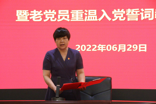 院党委副书记、院长邓琴在致词中表示,进行入党宣誓对于预备党员来说,这是最实际、最生动的党的观念教育,也是进行自我教育的好形式。入党宣誓,是党员政治生命开始的象征,是非常庄重、严肃的事情。党旗代表了党,誓词概括了党对党员的要求,也概括了党员对党组织和党的事业应承担的政治责任,而且有很强的针对性,有重大的教育意义。希望党员和预备党员们终生记住今天,终生用誓言来激励自己,在今后工作中,克服自身存在的缺点和不足,随时准备为党和人民的利益牺牲一切,成为一名合格的共产党员。