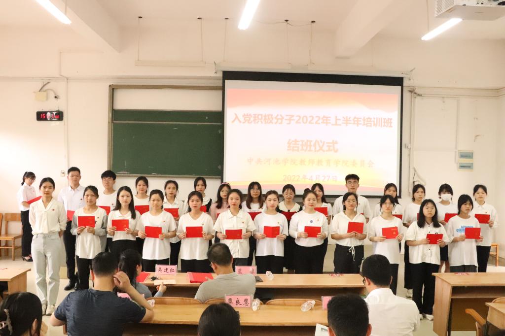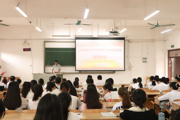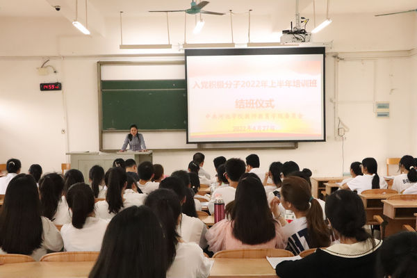 4月27日下午,万象城awc官网登录入口在弘毅楼2-307教室召开2022年上半年入党积极分子分子培训班结班仪式。学院党委副书记、纪委书记蓝凛,团委书记吴建红,学生支部书记及入党积极分子培训班全体学员参加了此次结班仪式。