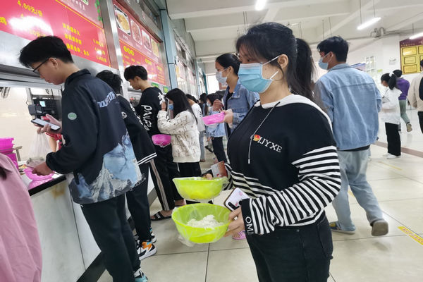 为了更好地给万象城官网居寝隔离的学生送去温暖,学生第二党支部党员化身送餐员,采取包寝一对一的服务方式,以QQ、微信、电话等方式进行联系,全程做好防护措施,自觉肩负起为隔离学生送餐的任务,辛勤往返于食堂和宿舍之间,让隔离的学生们都吃上了热腾腾的饭菜。