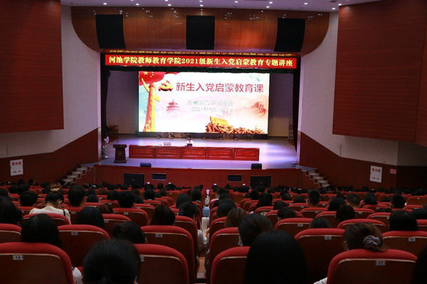 为进一步深入贯彻落实习近平新时代中国特色社会主义思想和党的十九大精神,增进新生对党的基本知识的理解和掌握,引导大家积极主动向党组织靠拢,9月13日下午,万象城awc官网登录入口在东区艺术楼表演厅举行2021级新生入党启蒙教育专题讲座,学院党委书记李新富、团委书记吴建红、辅导员、班主任及全体新生参加本次讲座。本次讲座由吴建红主持。