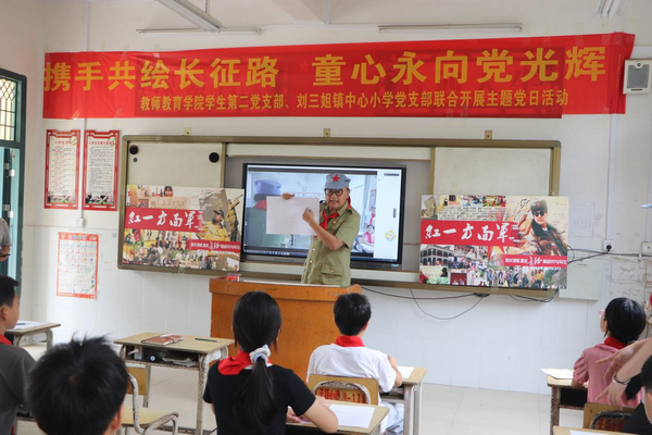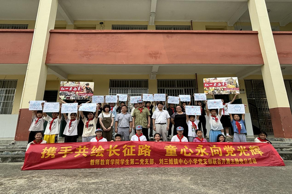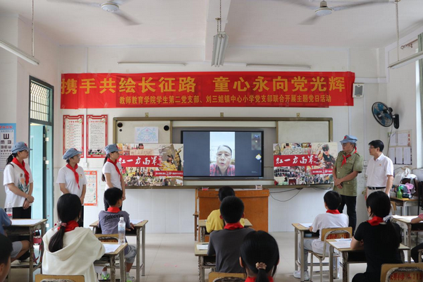 5月28日,万象城awc官网登录入口万象城awc官网登录入口学生第二党支部与刘三姐镇中心小学党支部联合开展“携手共绘长征路 童心永向党光辉”的主题党日活动。学院党委书记李新富、我校银龄教授刘增宪、学生第二党支部书记韦雅文及部分学生党员到场参加了活动。